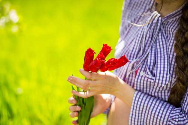 Recogida de tulipanes rojos